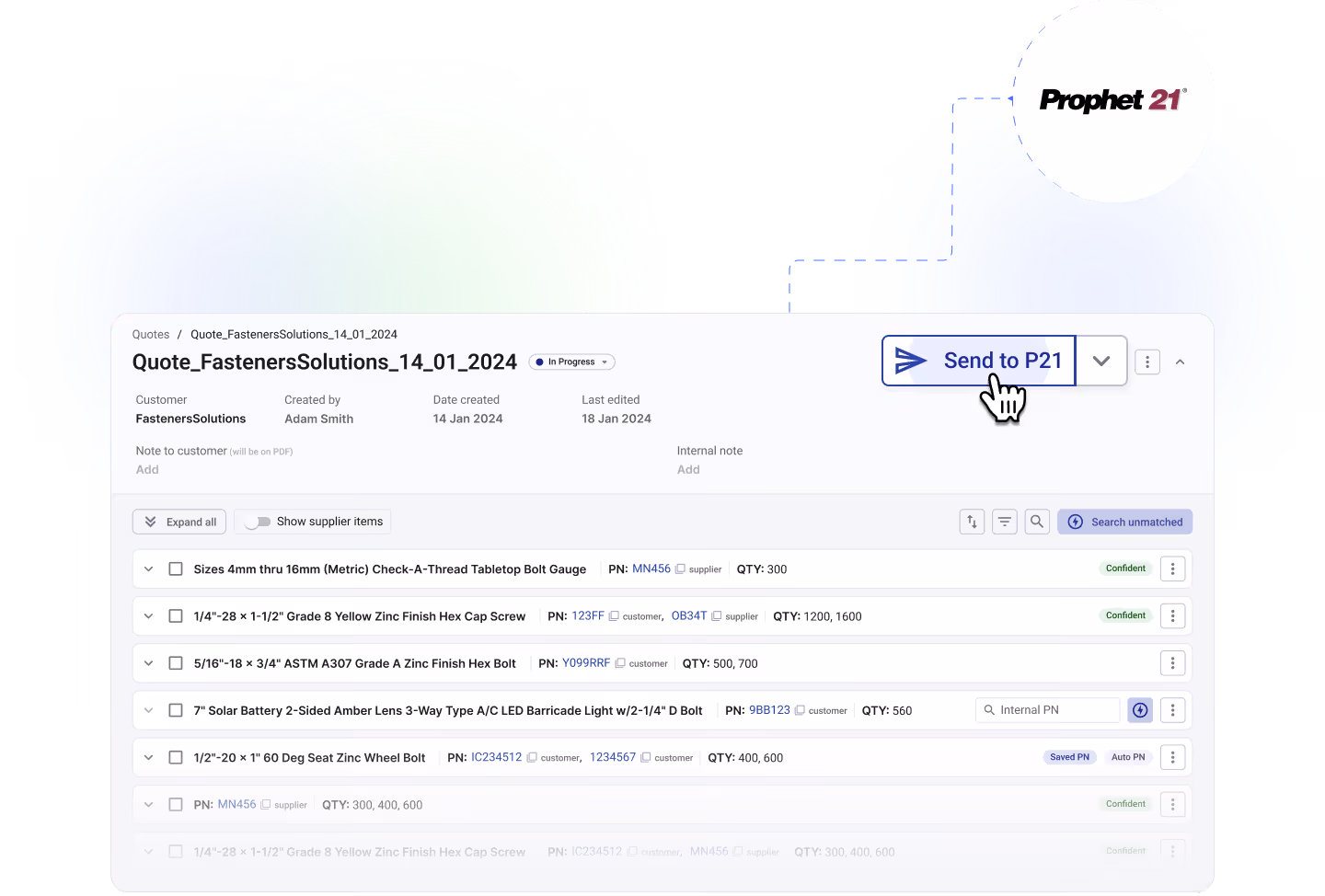 BoltWise integrates with Prophet 21 using secure, API-based connections.